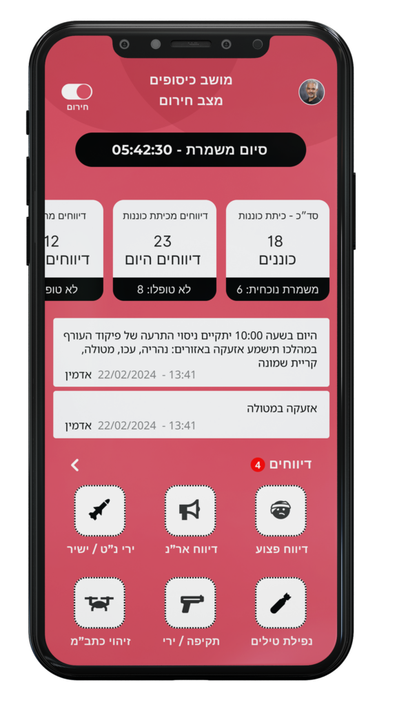 פאנל ניהול לכוחות הביטחון היישוביים ומתנדבים לניהול משימות ותקשורת מוצפנת.